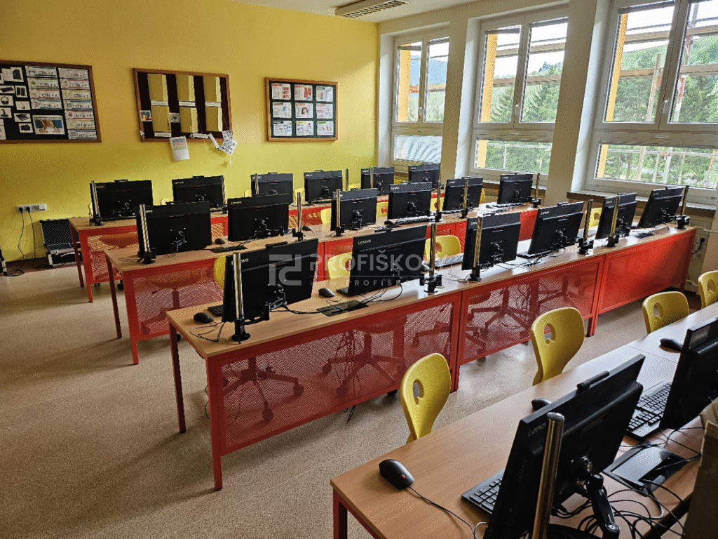 Vybavení jazykové učebny od nás zahrnuje speciálně navržený nábytek, který podporuje interaktivní a efektivní výuku jazyků. Nabízíme ergonomické stoly a židle, které jsou ideální pro dlouhodobé sezení během jazykových lekcí, a zároveň poskytují dostatek prostoru pro učební materiály a technologie. Náš nábytek do odborné učebny je navržen tak, aby podporoval moderní výukové metody a zároveň byl odolný vůči každodennímu používání. Pro počítačové školní učebny nabízíme speciálně navržené počítačové stoly a židle, které zajišťují pohodlí a ergonomii pro studenty i učitele, a zároveň umožňují efektivní využití technologických prostředků.