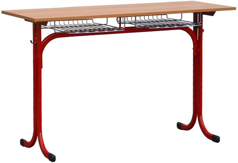 Školní lavice stavitelná CLAUDIE vyrobena z plochooválových ocelových profilů (38x20). Povrchová úprava lavice do školy je vypalovaná prášková barva, součástí konstrukce jsou háčky na zavěšení školní brašny. Nastavení školní lavice pomocí distančních mezičlánků, zajištění imbusovým šroubem. Nohy lavice opatřeny plastovými krytkami v černé barvě. Jako odkládací prostor slouží pozinkované drátěné koše. Horní deska z laminované dřevotřísky (1300x500 mm) v dekoru buk tl. 18 mm chráněna kvalitní 2 mm ABS hranou.