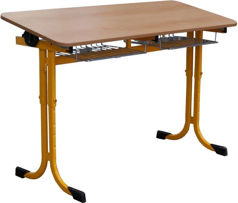 Školní lavice stavitelná ESTER je vyrobena z plochooválových ocelových profilů (plochoovál 38x20 mm a 45x25 mm, jäkl 50x20 mm). Povrchová úprava lavice do školy je vypalovaná prášková barva, součástí konstrukce jsou háčky na zavěšení školní brašny. Nastavení výšky školní lavice pro dva žáky zamáčknutím čepu a zajištěním imbusovým šroubem. Nohy lavice do školy opatřeny plastovými krytkami v černé barvě. Jako odkládací prostor slouží pozinkované drátěné koše. Horní deska z laminované dřevotřísky (1300x500 mm) v dekoru buk tl. 18 mm chráněna kvalitní 2 mm ABS hranou.