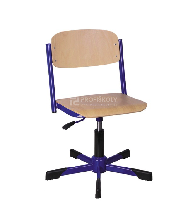 Školní židle LABI na kolečkách. Opěrka i sedák - tvarovaná lakovaná vícevrstevná buková překližka. Nastavení výšky pomocí plynového pístu 420 - 550 mm. Kovová konstrukce plochoovál 38x20 mm a profil 30x15 mm tloušťka 1,5 mm, nosný kříž pětiramenný. Povrchová úprava komaxit (vypalovaná prášková barva). Kolečka o průměru 50 mm nebo kluzáky (návleky). Minimální nosnost 120 kg.