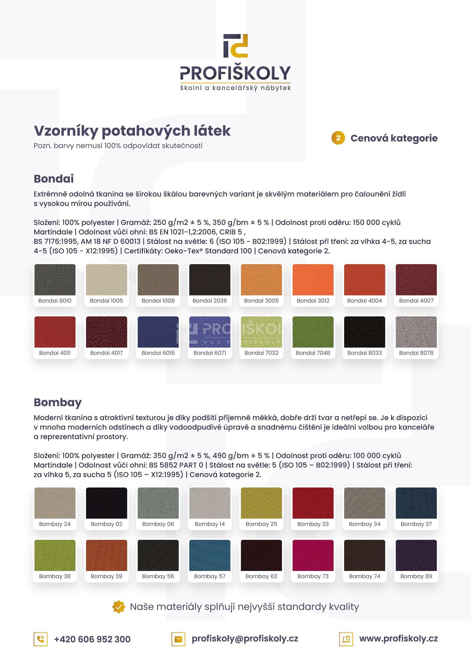 Čalounění – cenové kategorie 1 (standard), ostatní kategorie za příplatek (spočítáme individuálně). Nelze vyrobit v látce Fill a Bondai