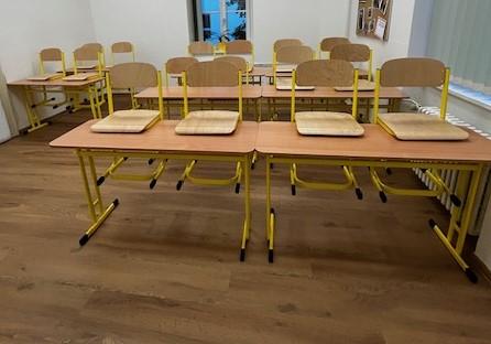 Školní lavice dvoumístná TERA je vyrobena z plochooválových ocelových profilů. Povrchová úprava stavitelné školní lavice je vypalovaná prášková barva, součástí konstrukce jsou háčky na zavěšení školní brašny. Nohy této lavice do školy jsou opatřeny plastovými krytkami v černé barvě. Stavitelnost zajištěna dvěma imbusovými šrouby. Jako odkládací prostor slouží drátěné koše. Horní deska z laminované dřevotřísky (1300x500 mm) v dekoru buk tl. 18 mm chráněna kvalitní 2 mm ABS hranou.