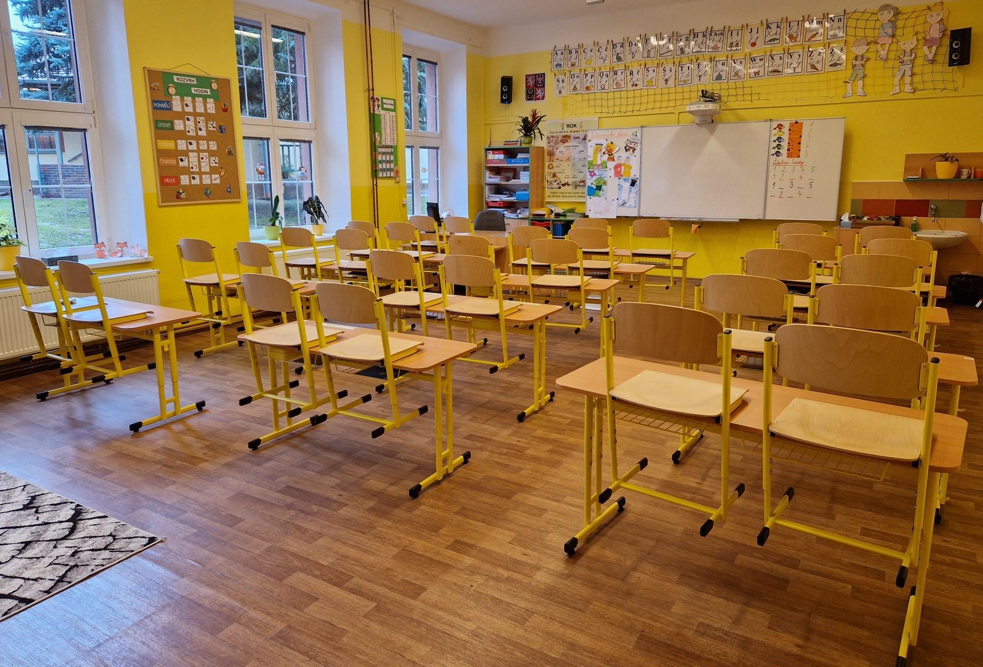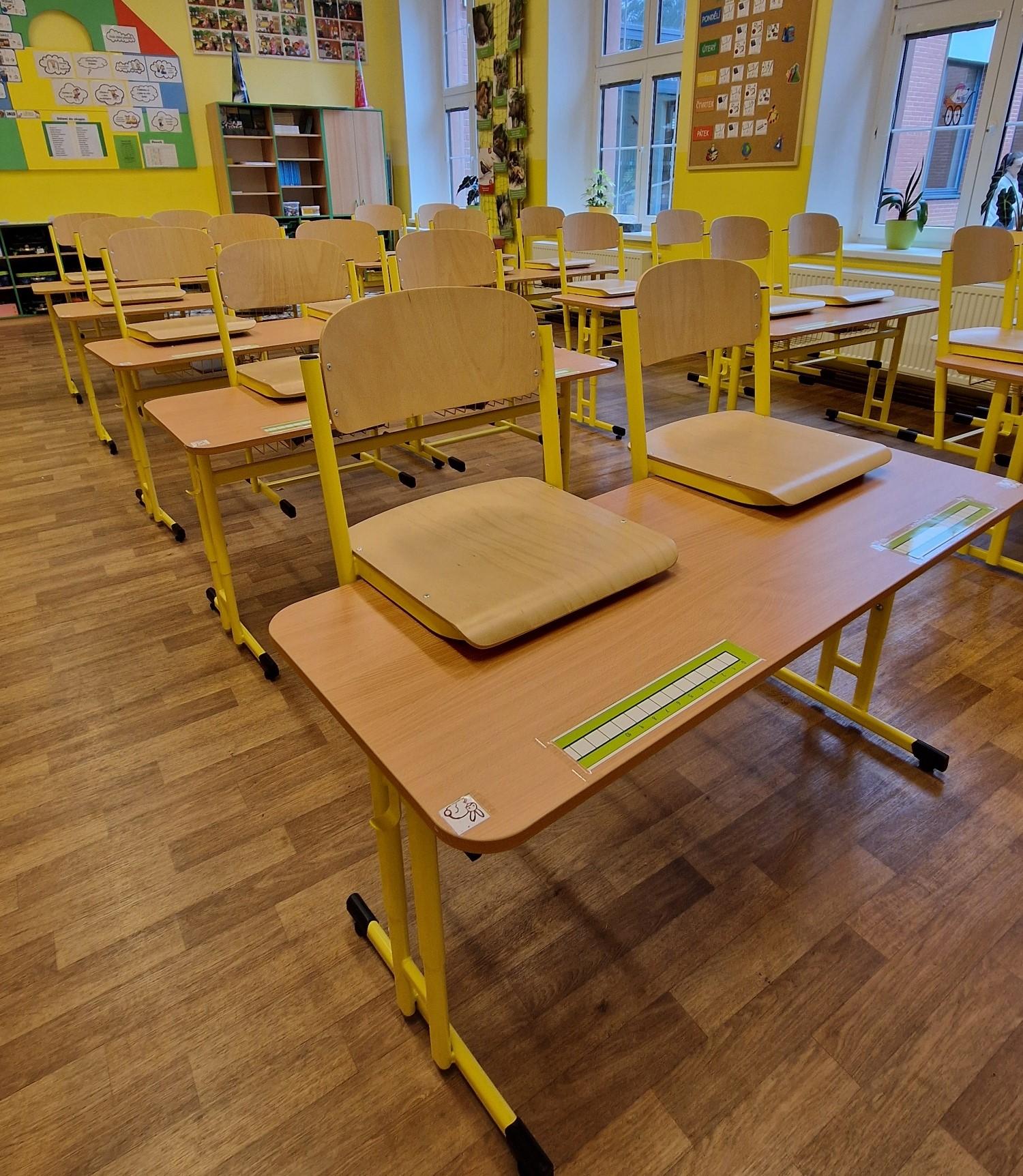 Školní židle stavitelná TERA je vyrobena z plochooválových ocelových profilů. Povrchová úprava židle do školy je vypalovaná prášková barva. Stavitelnost školní židle je zajištěna dvěma imbusovými šrouby. Sedák i opěrák je vyroben z ergonomicky tvarované lakované bukové překližky, případně odolné CPL folie. Pod sedákem umístěny plastové krytky proti poškrábání desky lavice. Nohy židle do školy jsou opatřeny plastovými kluzáky.