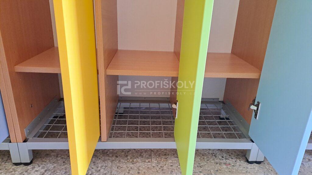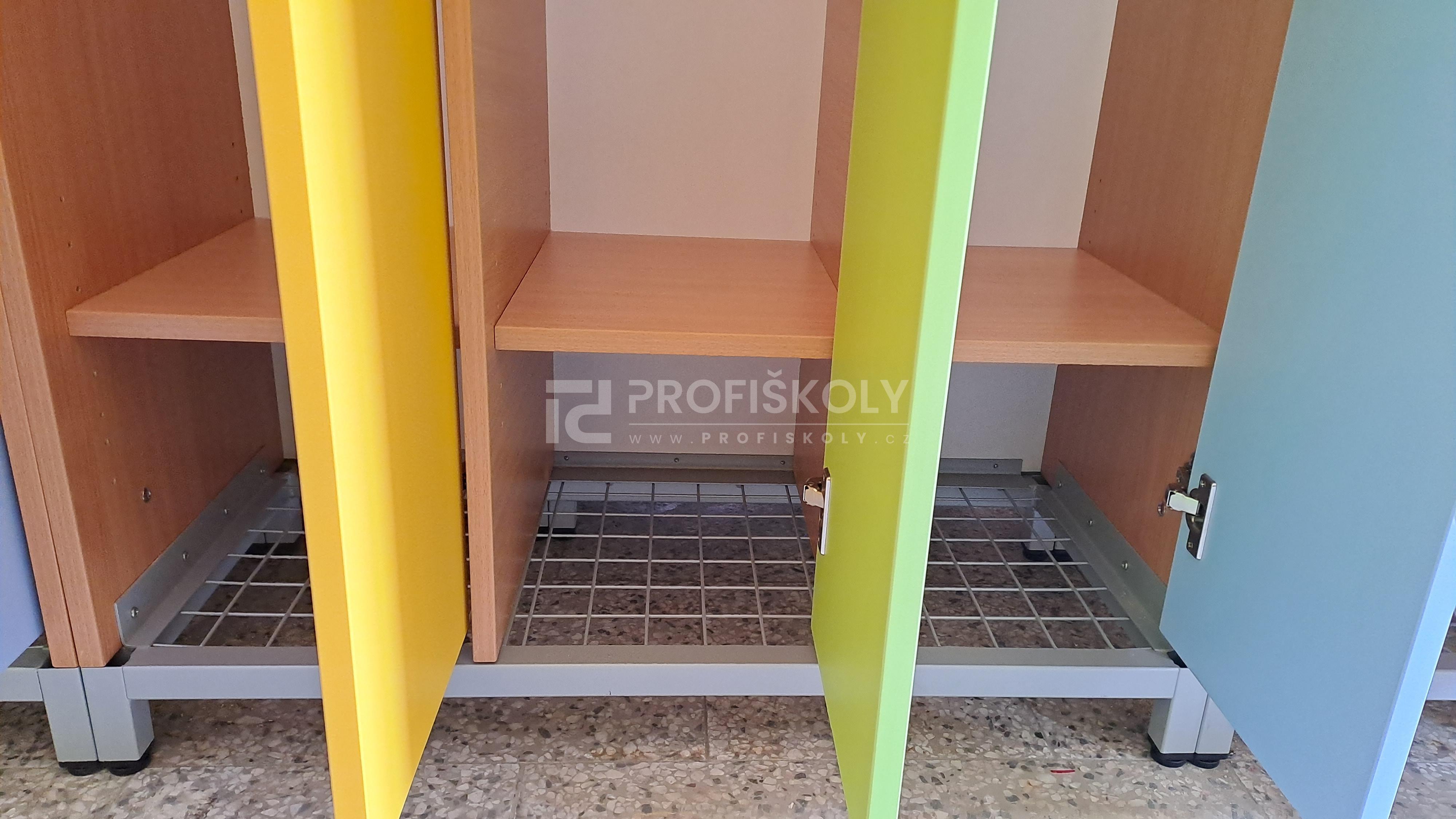 Základem spokojeného školního dne je funkční zázemí. Pro první i druhý stupeň jsme instalovali šatní skříně vyrobené z kvalitního lamina, které jsou doplněny o robustní kovový rošt. Tento systém zajišťuje maximální odvětrávání a dlouhou životnost i při každodenní vysoké zátěži. Naše vybavení školní šatny kombinuje bezpečnost s moderním vzhledem.