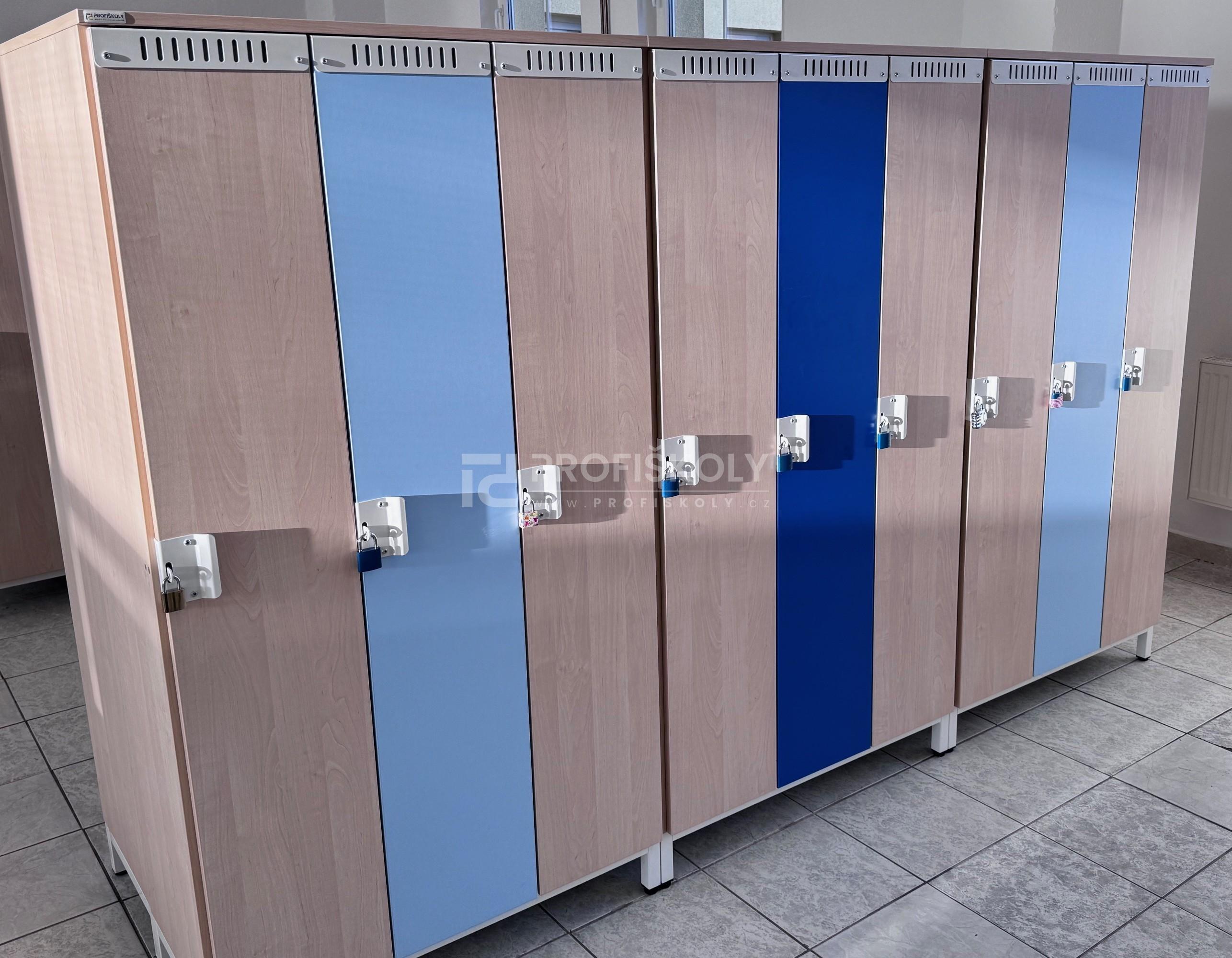 • Bezpečnost a vnitřní výbava: Každý modul má uzamykání na visací zámek (oblíbená a praktická volba pro základní školy) a uvnitř skrývá pevné dvojháčky na oblečení, které bez problémů unesou i plnou zimní výbavu žáků.