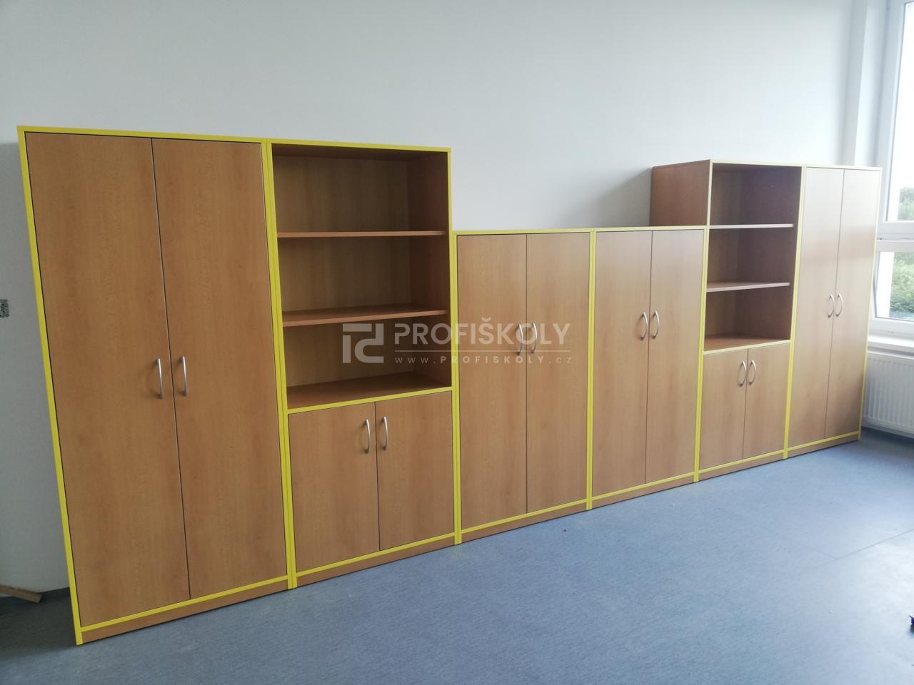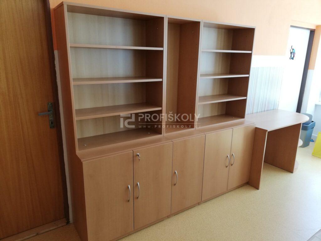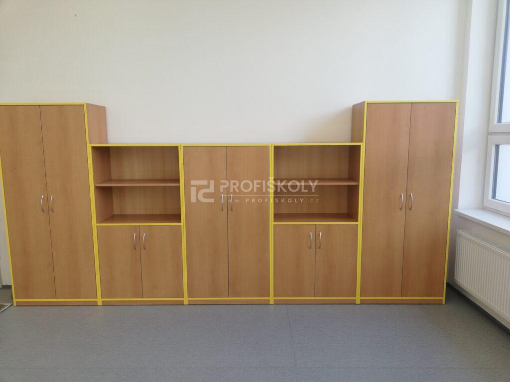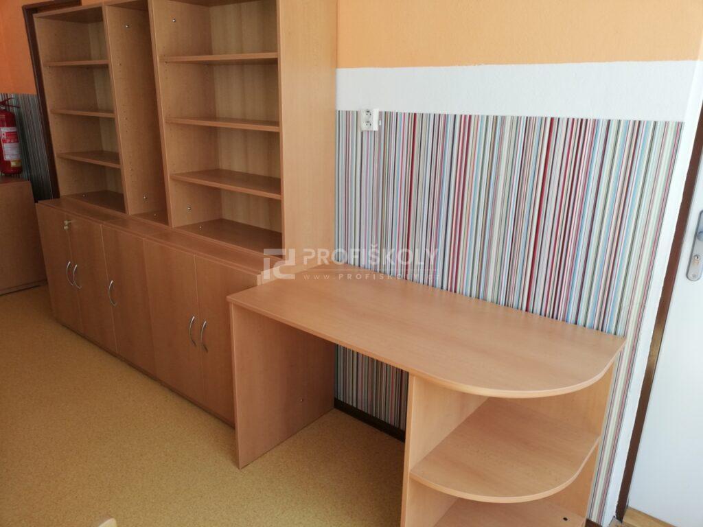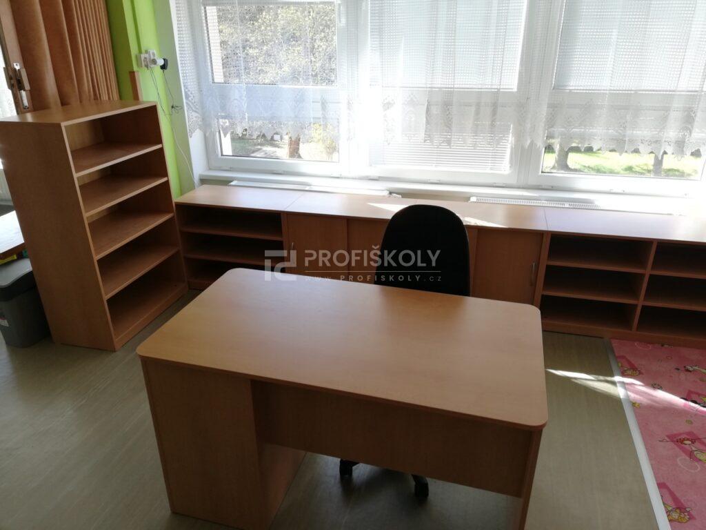 - Školní družina: Pro volnočasové aktivity jsme prostor vybavili praktickými skříňkami a robustním pracovním stolem, který slouží pro kreativní tvorbu i odpočinek.