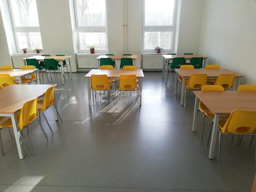 - Učebny: Dodali jsme klasické školní lavice a židle, které doplňují prostorné katedry. Nezapomněli jsme ani na pohodlí pedagogů, pro které jsme vybrali ergonomické kancelářské židle vhodné pro dlouhodobou práci.