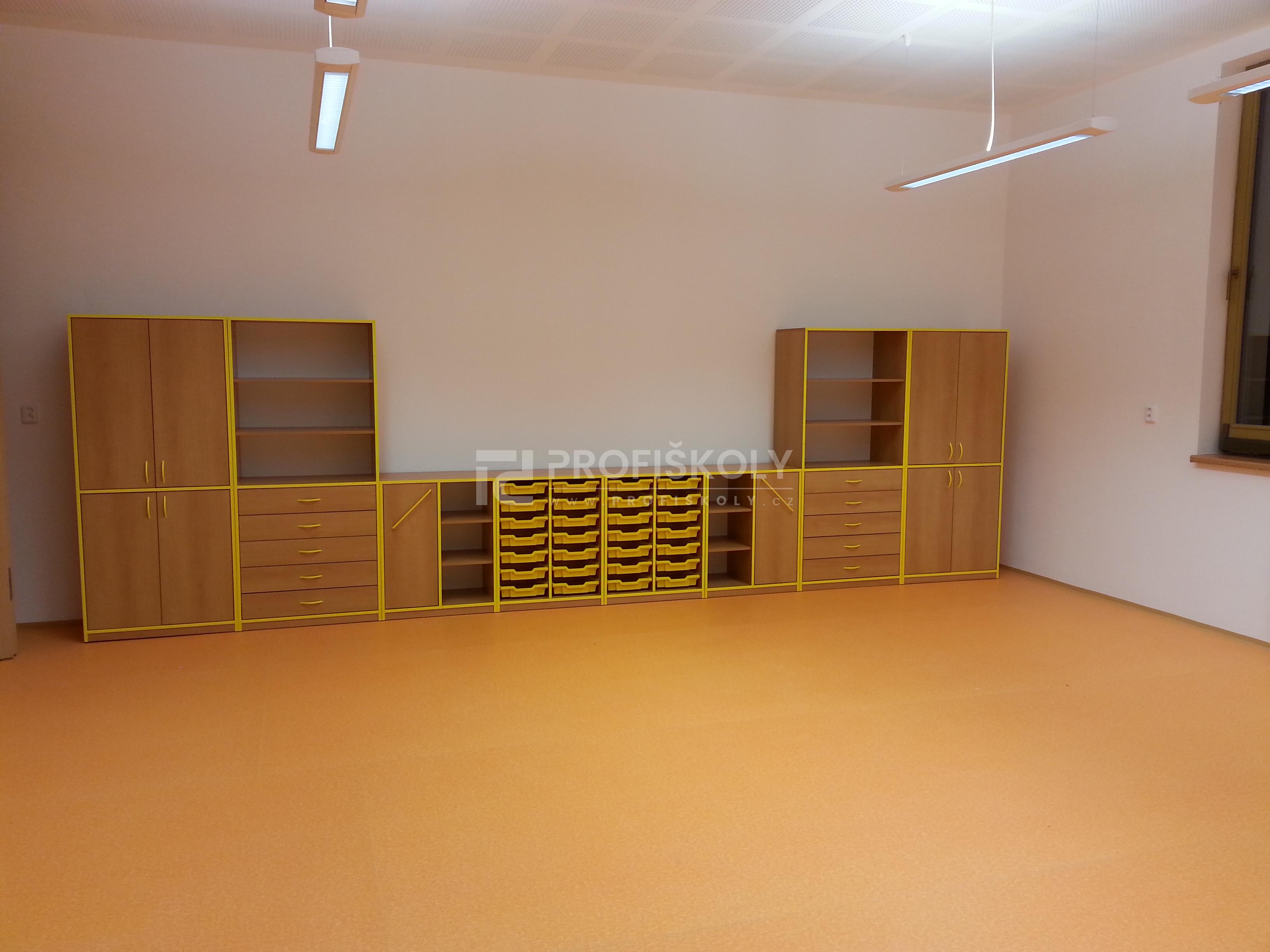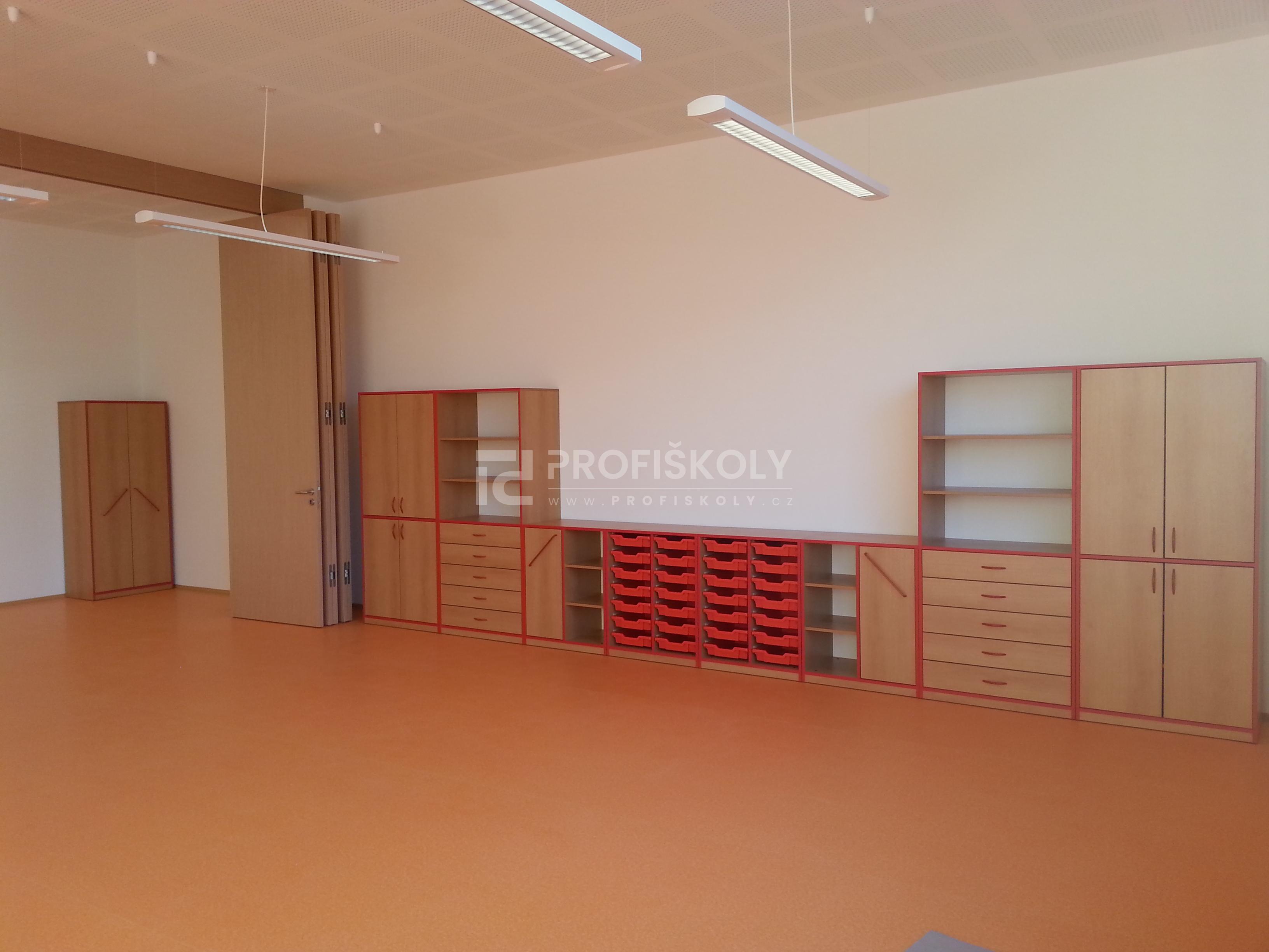 Pro rozvoj talentu jsme vybavili specializovaný ateliér výtvarné výchovy. Dodané pracovní stoly, židle a úložné skřínky jsme navrhli tak, aby odolaly kreativnímu provozu a poskytovaly dostatek prostoru pro uměleckou tvorbu.