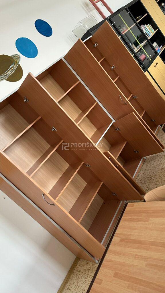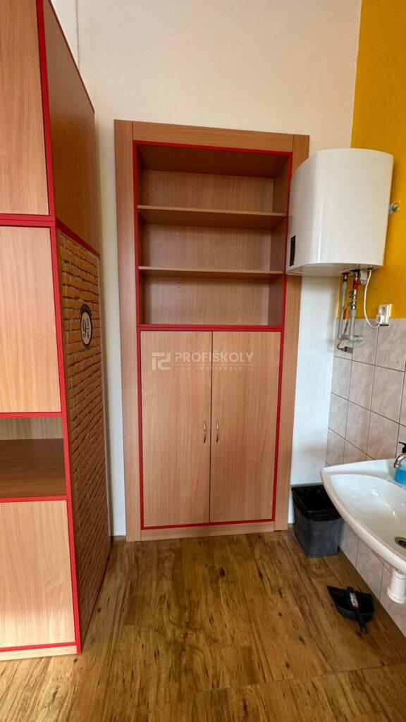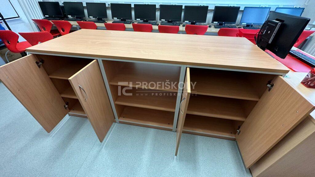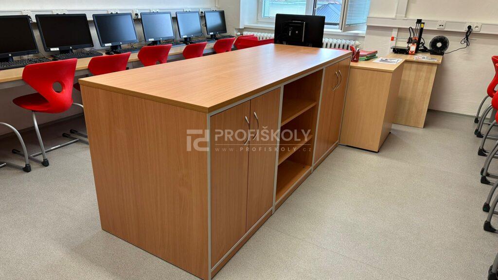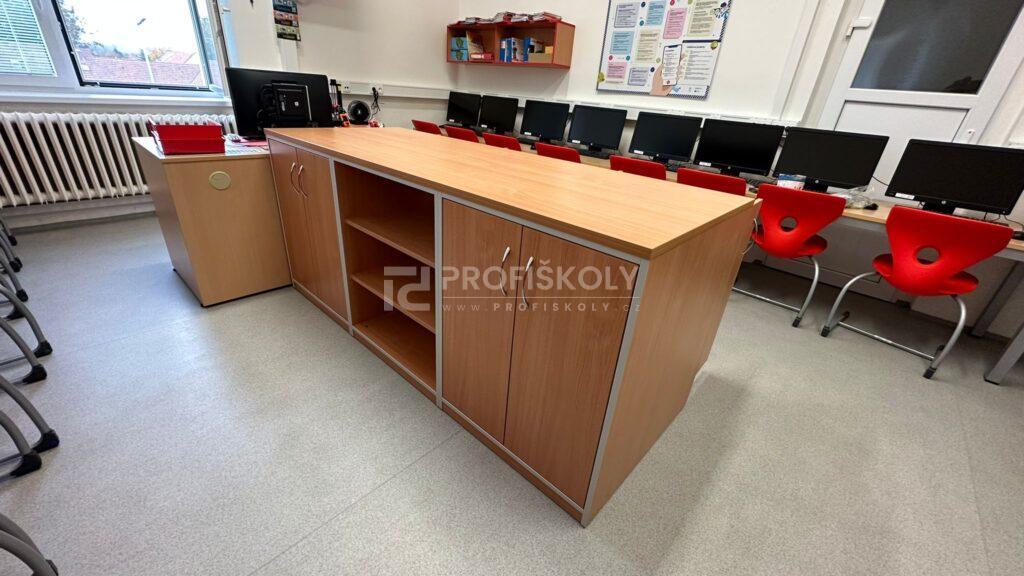 V oblasti vybavení počítačové učebny jsme se tentokrát zaměřili především na úložné a organizační skříně. Specifikem IT učeben je potřeba bezpečně a přehledně ukládat hardware, periferní zařízení i odbornou literaturu. Dodané skříňové systémy jsme konstrouvali s ohledem na vyšší nosnost a stabilitu. Díky promyšlenému vnitřnímu uspořádání skříní má každá část techniky své pevné místo, což usnadňuje správu učebny a chrání investice školy do technického vybavení.