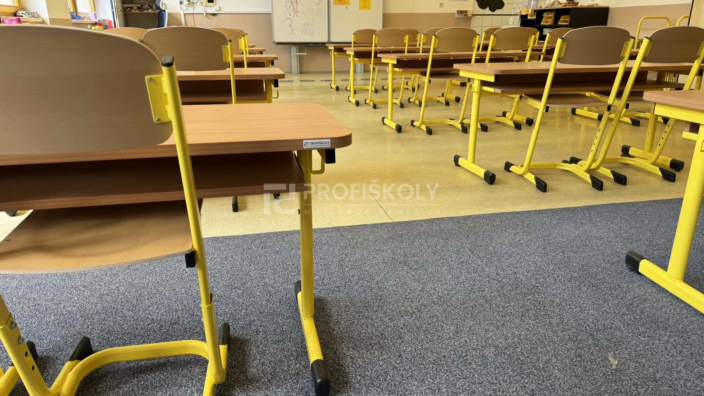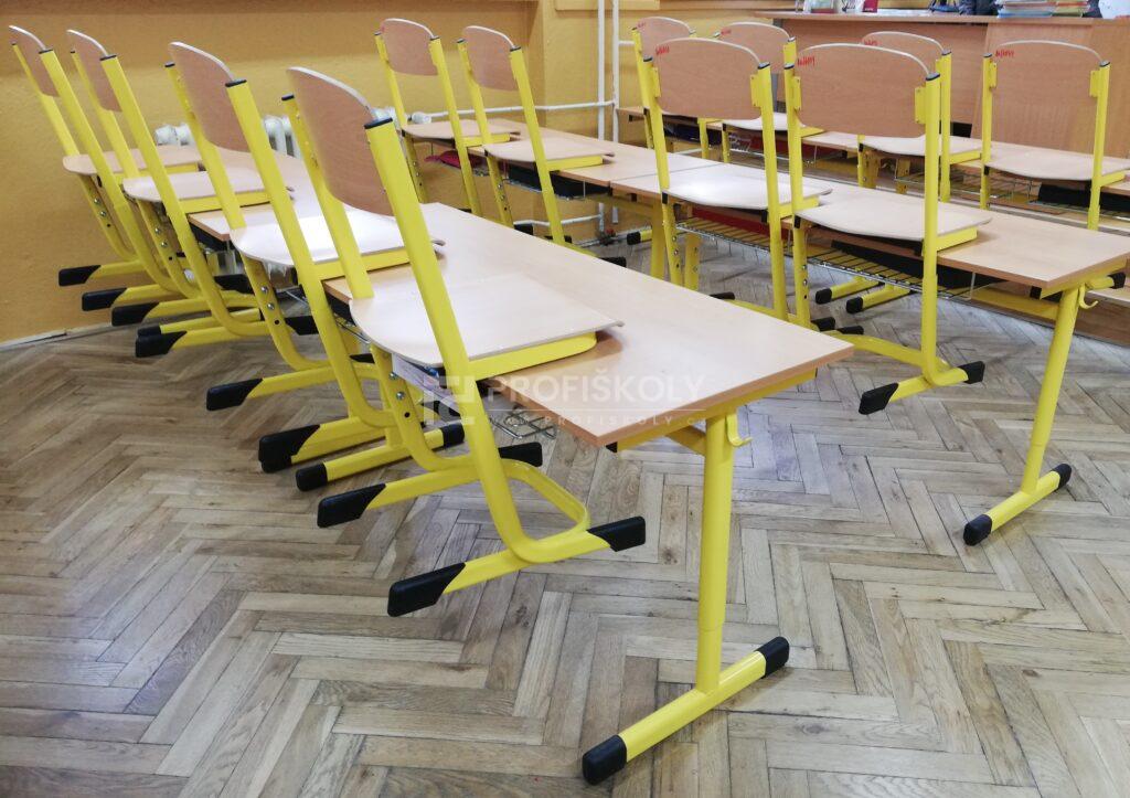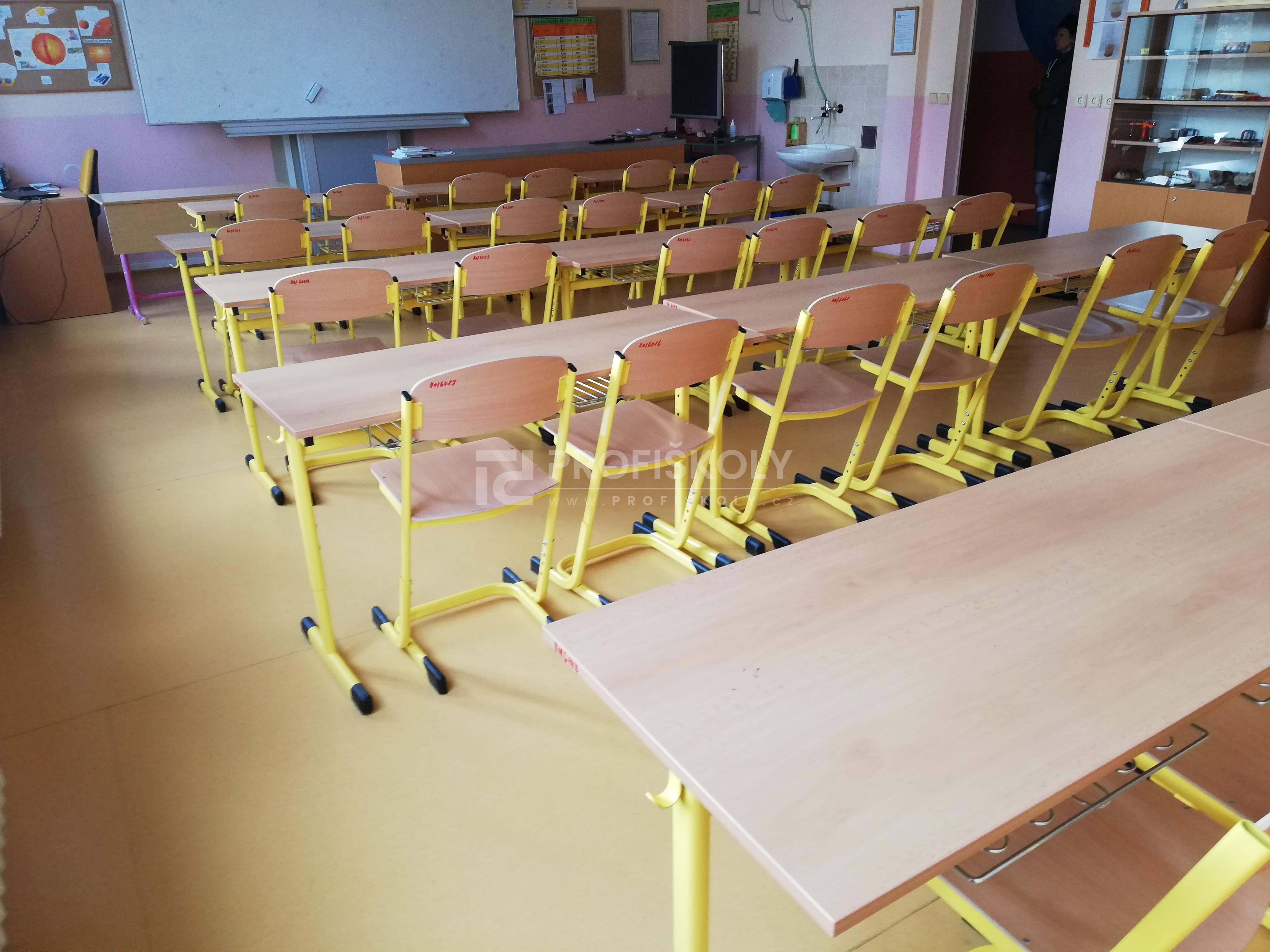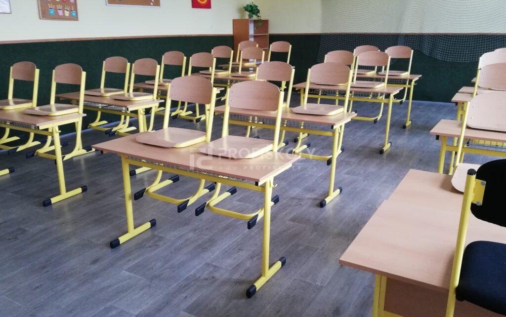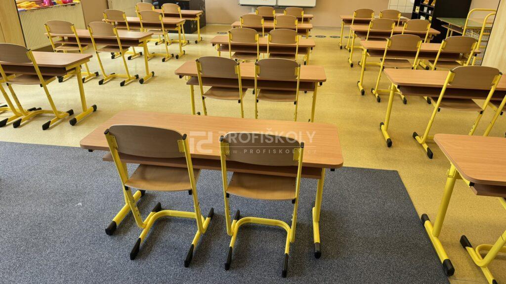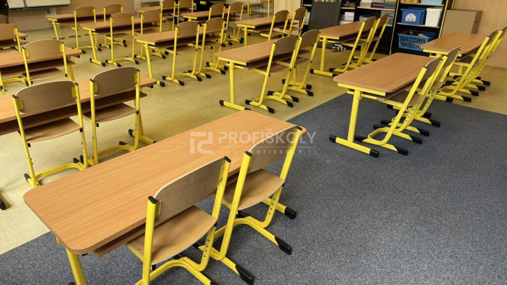 Do několika učeben jsme dodali kompletní sestavy školních lavic, židlí a učitelských kateder. Při výběru jsme kombinovali dvě varianty provedení: