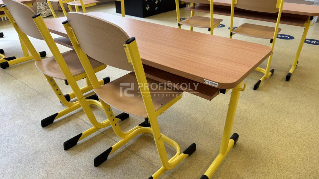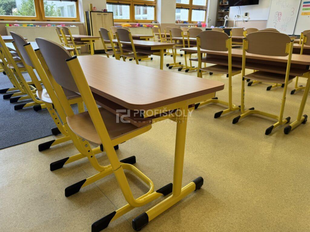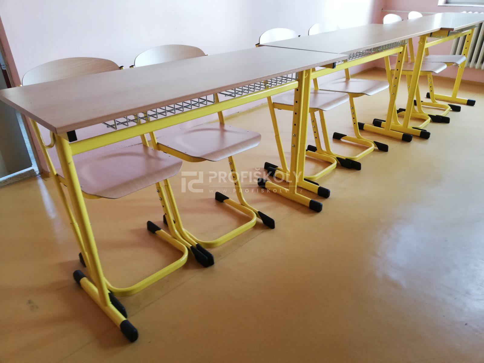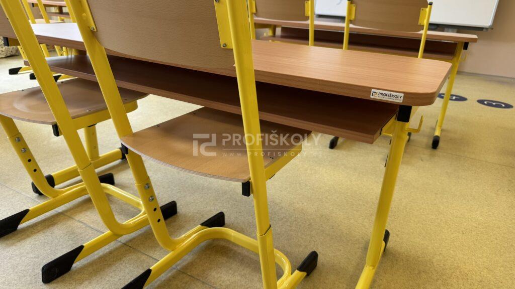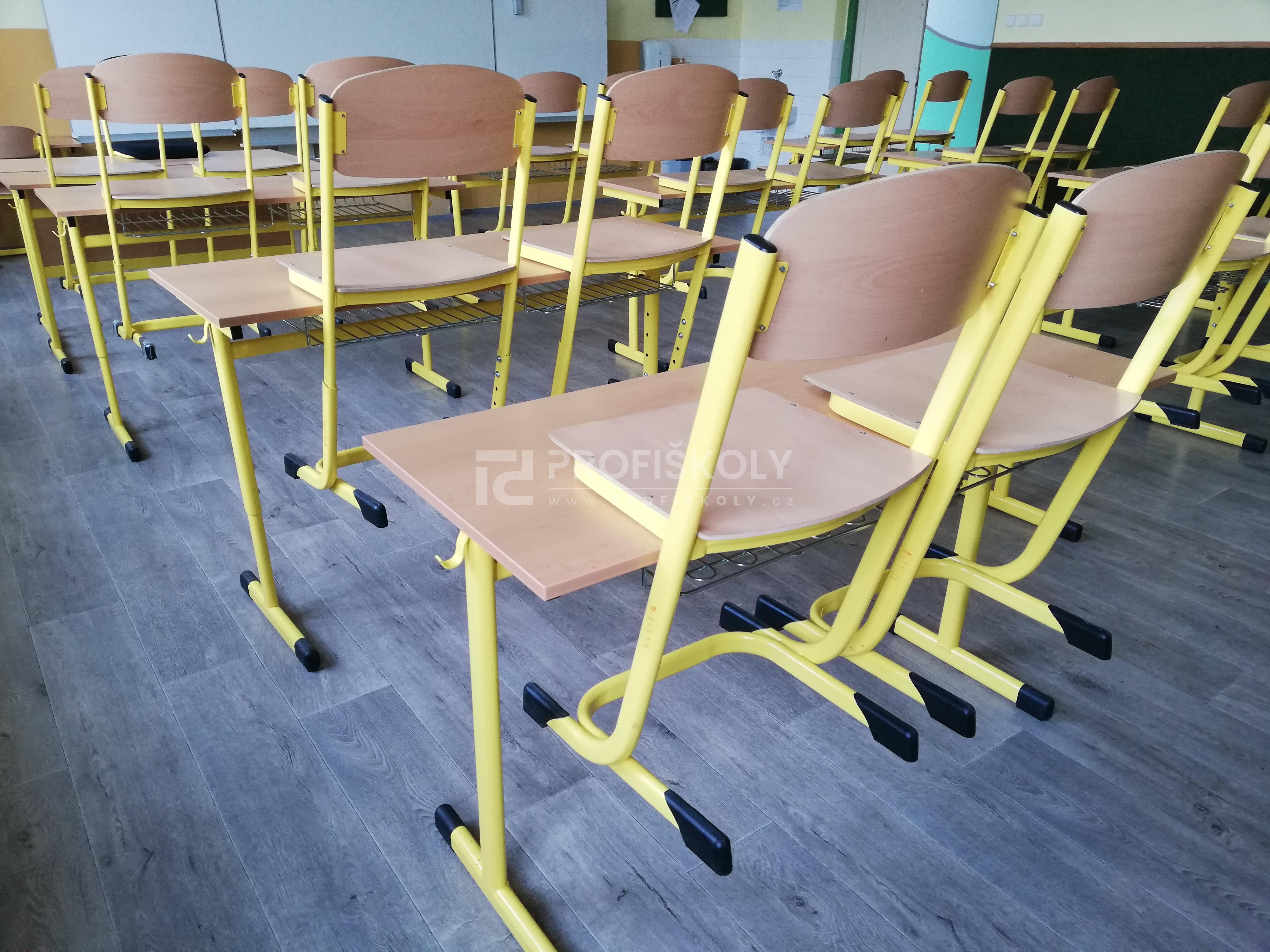 Do několika učeben jsme dodali kompletní sestavy školních lavic, židlí a učitelských kateder. Při výběru jsme kombinovali dvě varianty provedení: