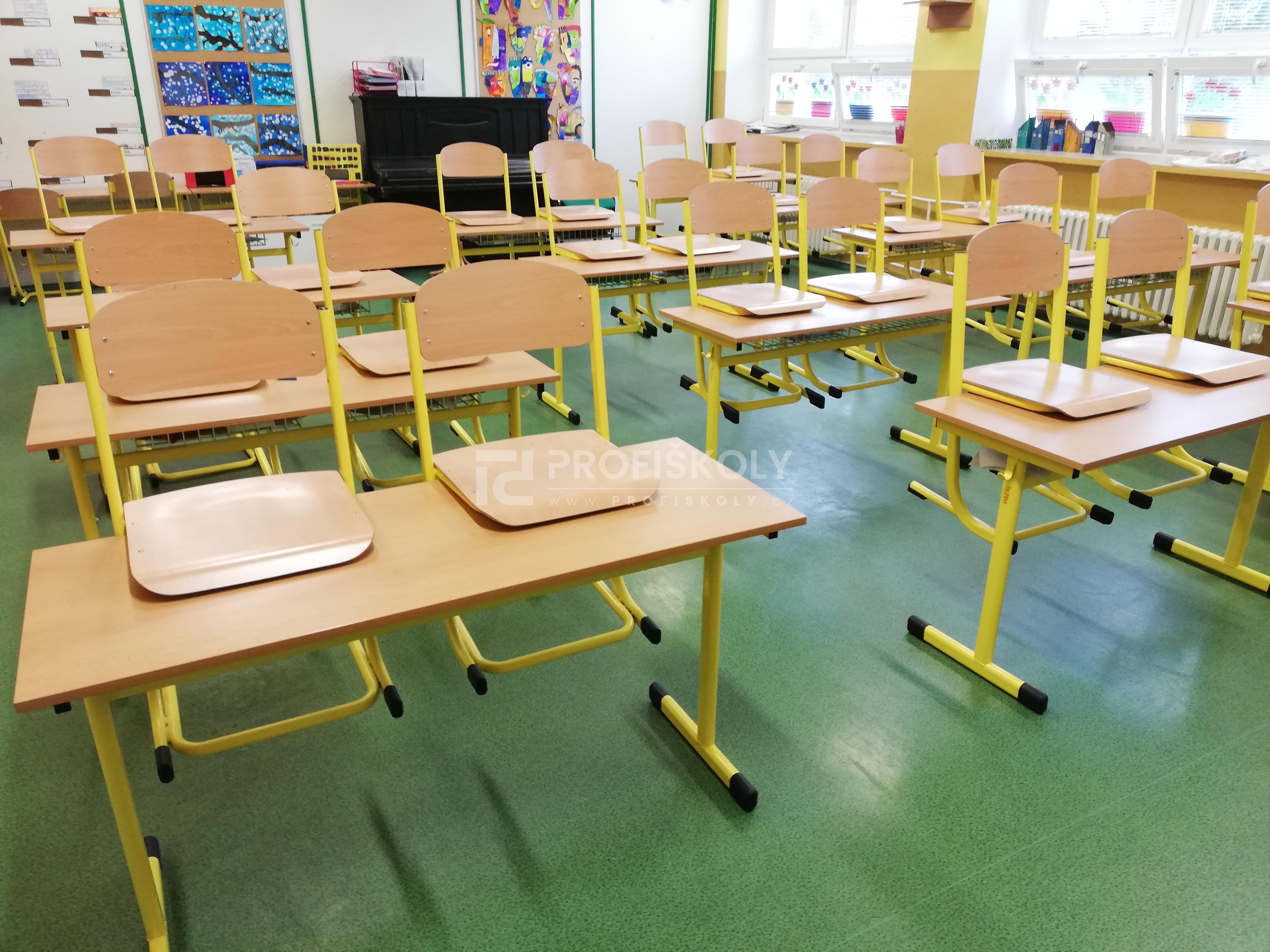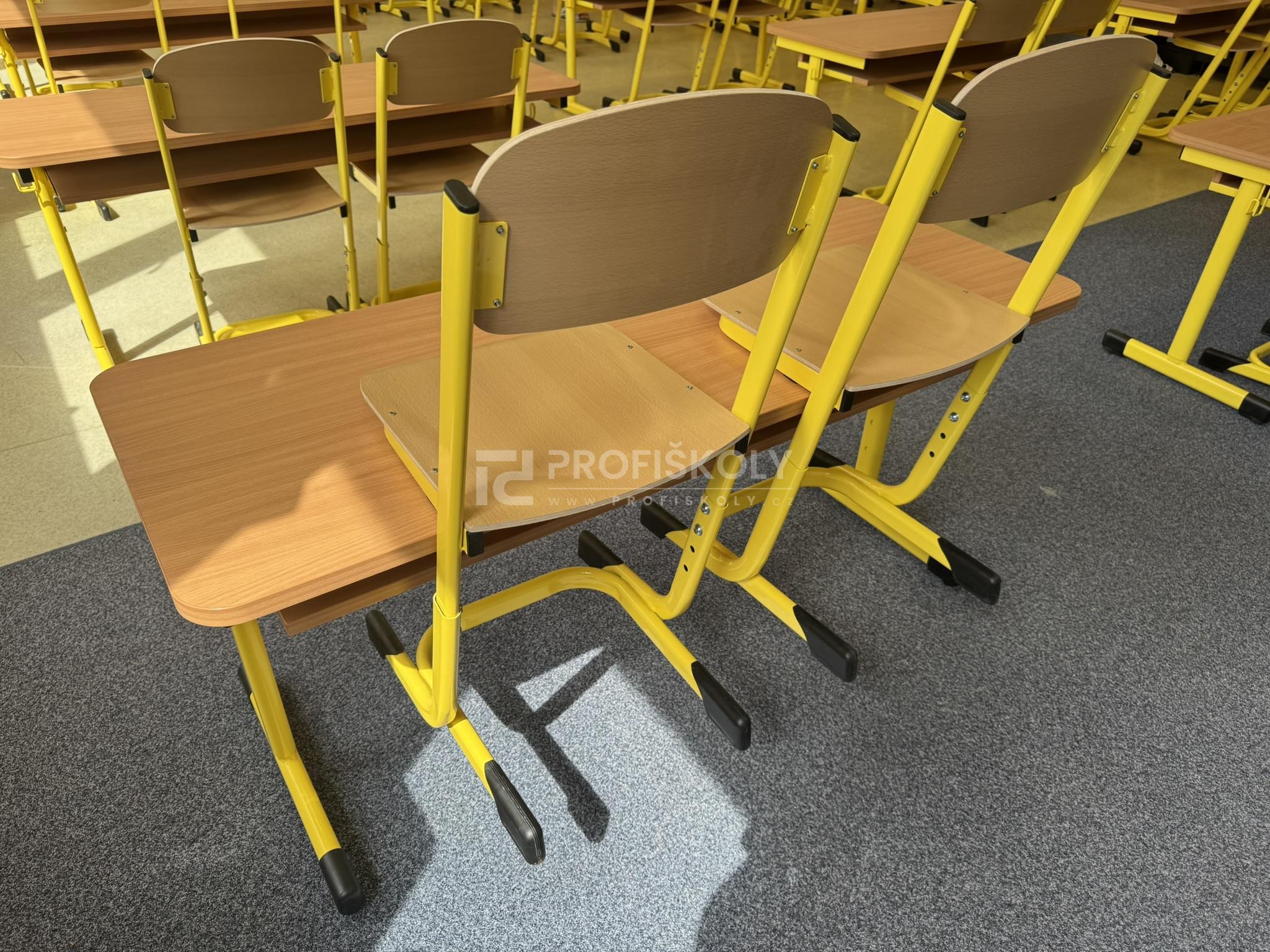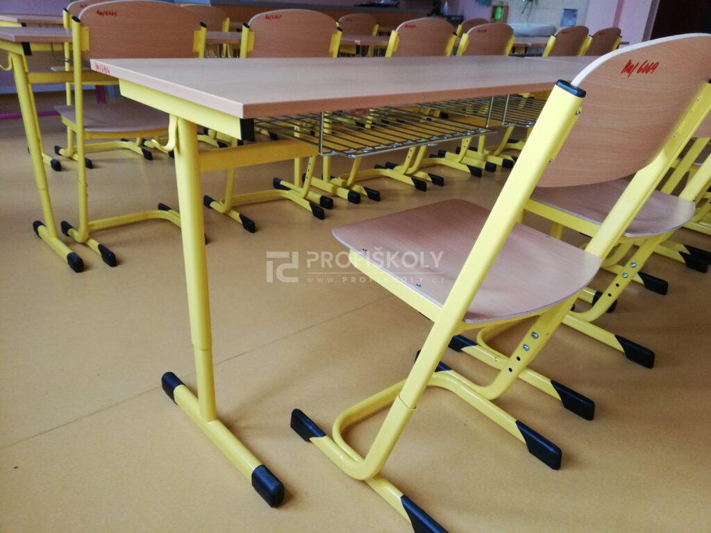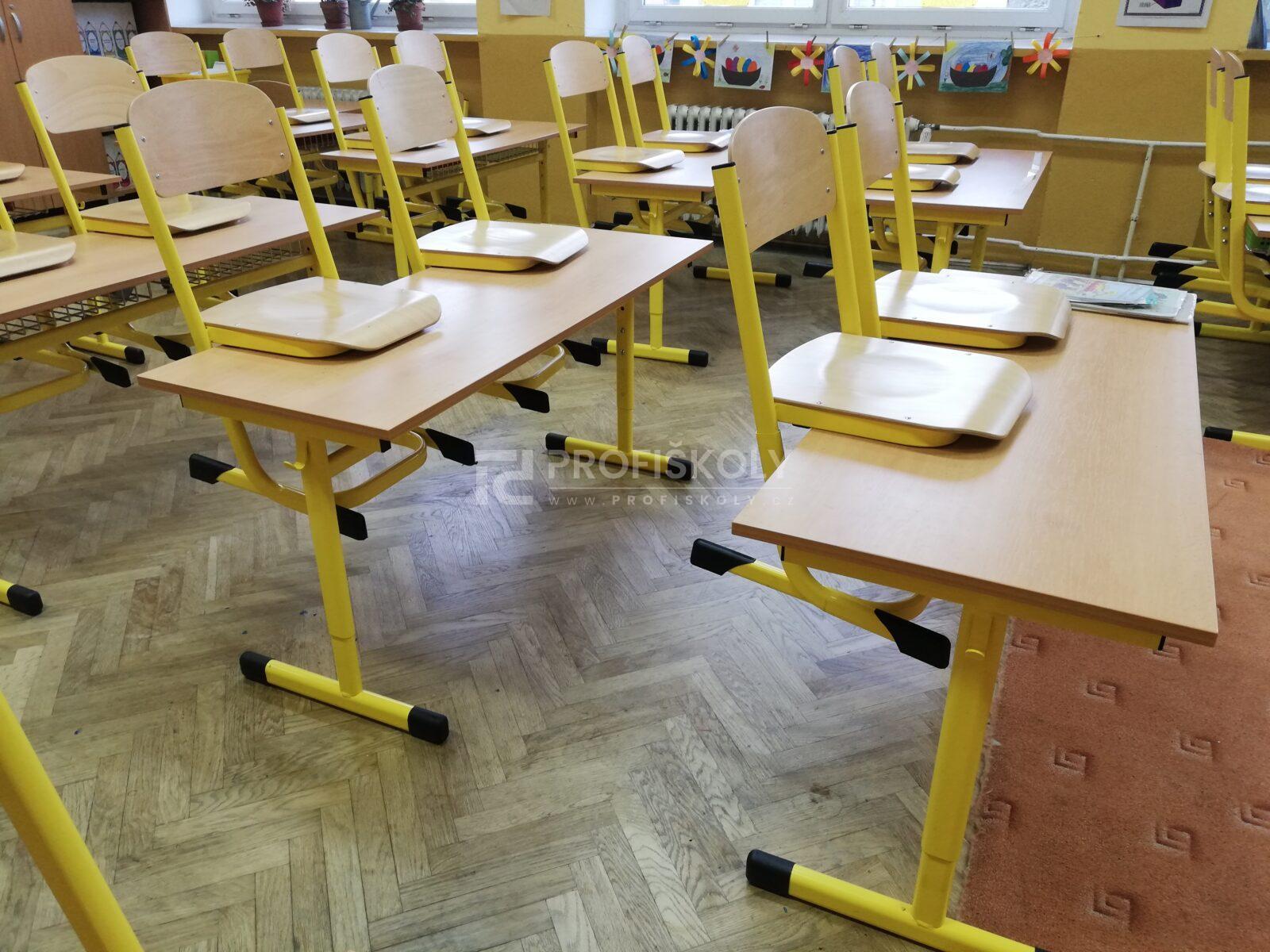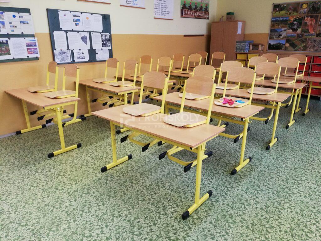 Do několika učeben jsme dodali kompletní sestavy školních lavic, židlí a učitelských kateder. Při výběru jsme kombinovali dvě varianty provedení: