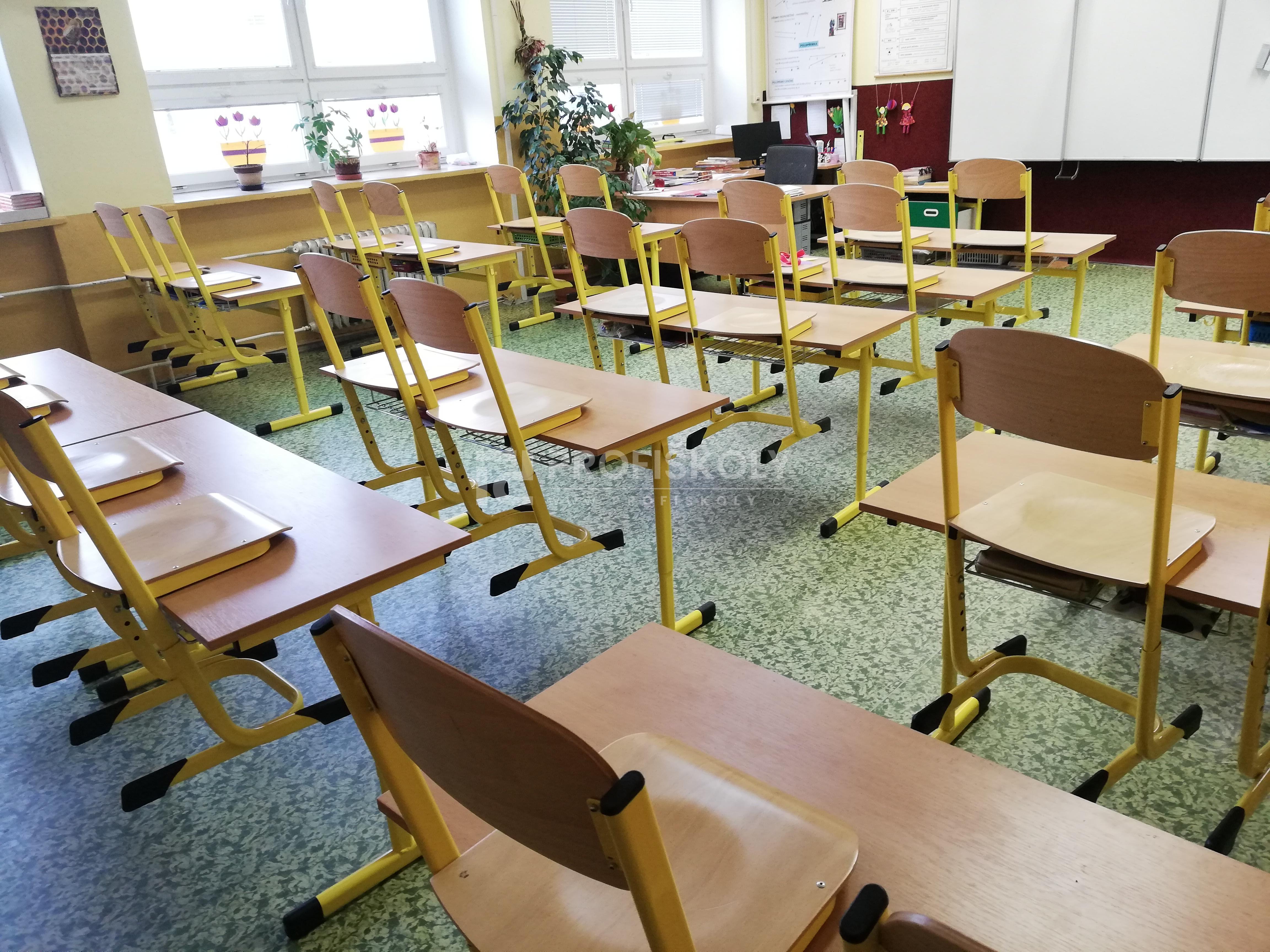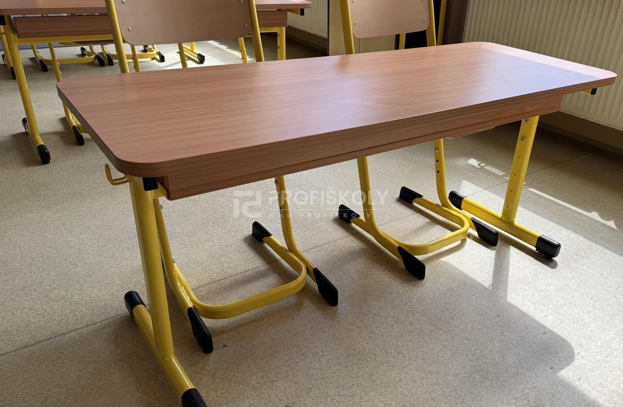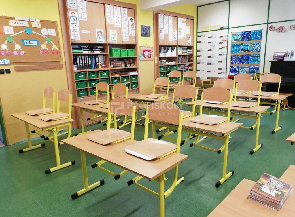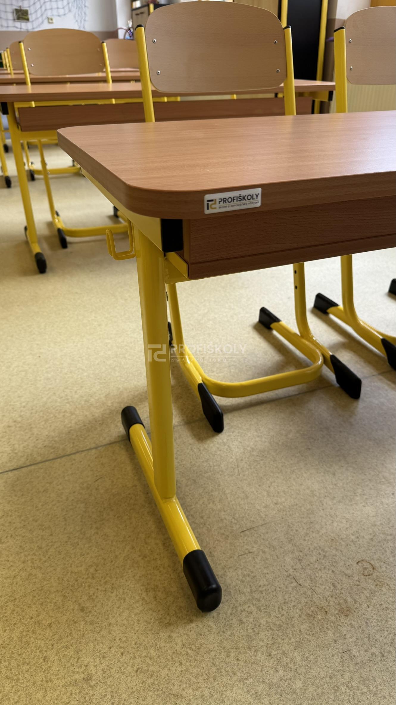 Do několika učeben jsme dodali kompletní sestavy školních lavic, židlí a učitelských kateder. Při výběru jsme kombinovali dvě varianty provedení: