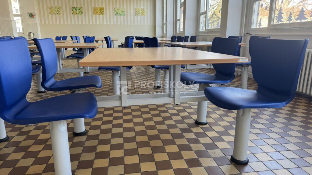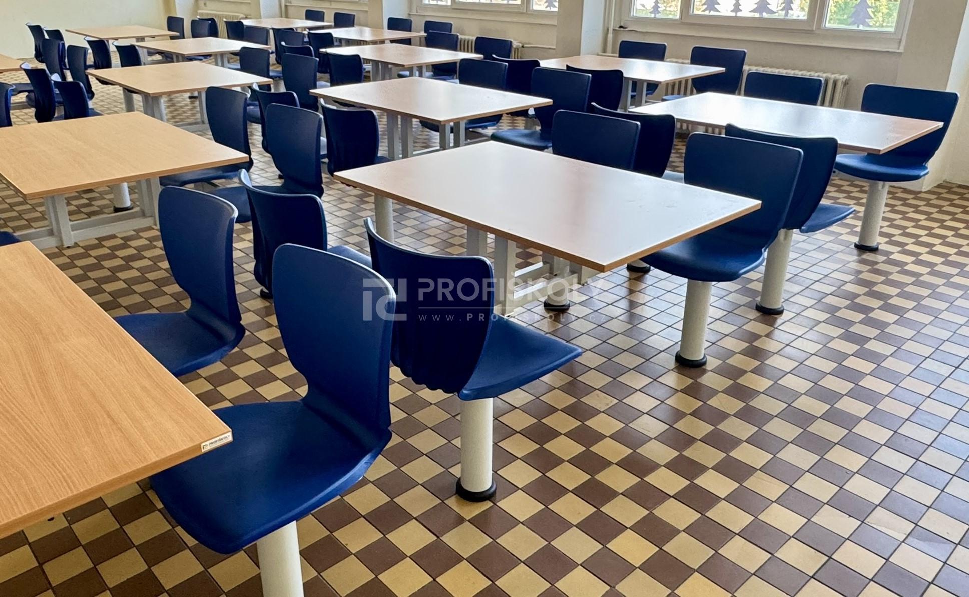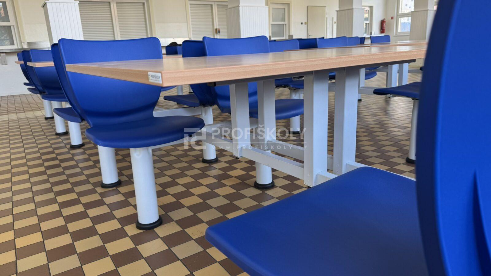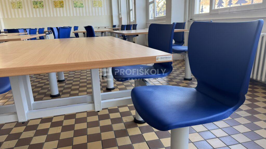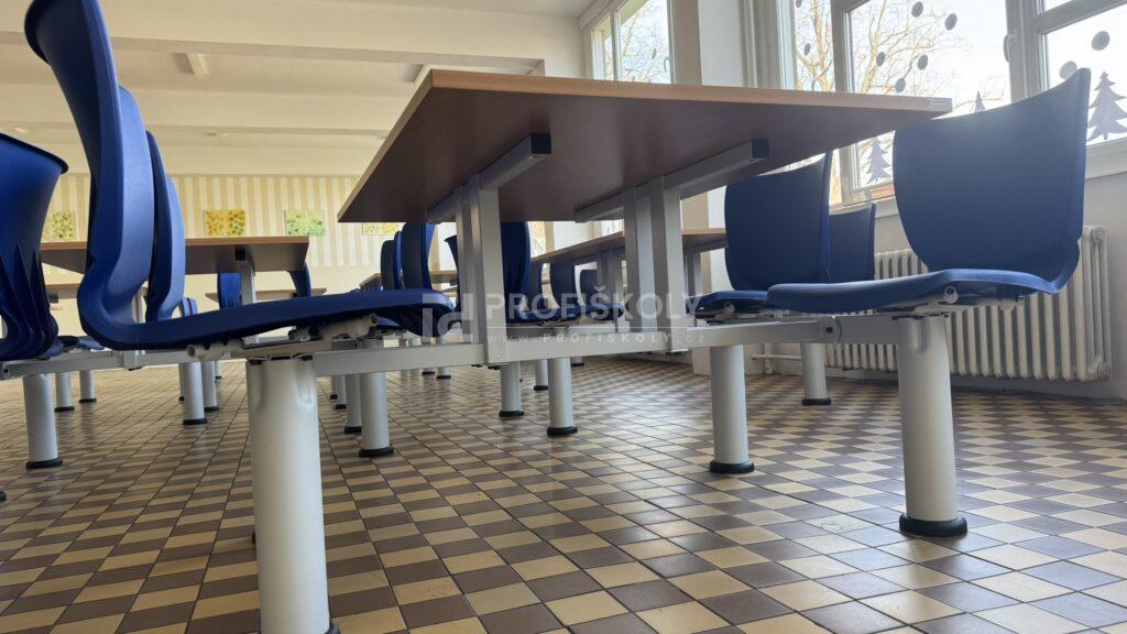 Moderní vybavení školní jídelny, lavice a židle do kmenových učeben
